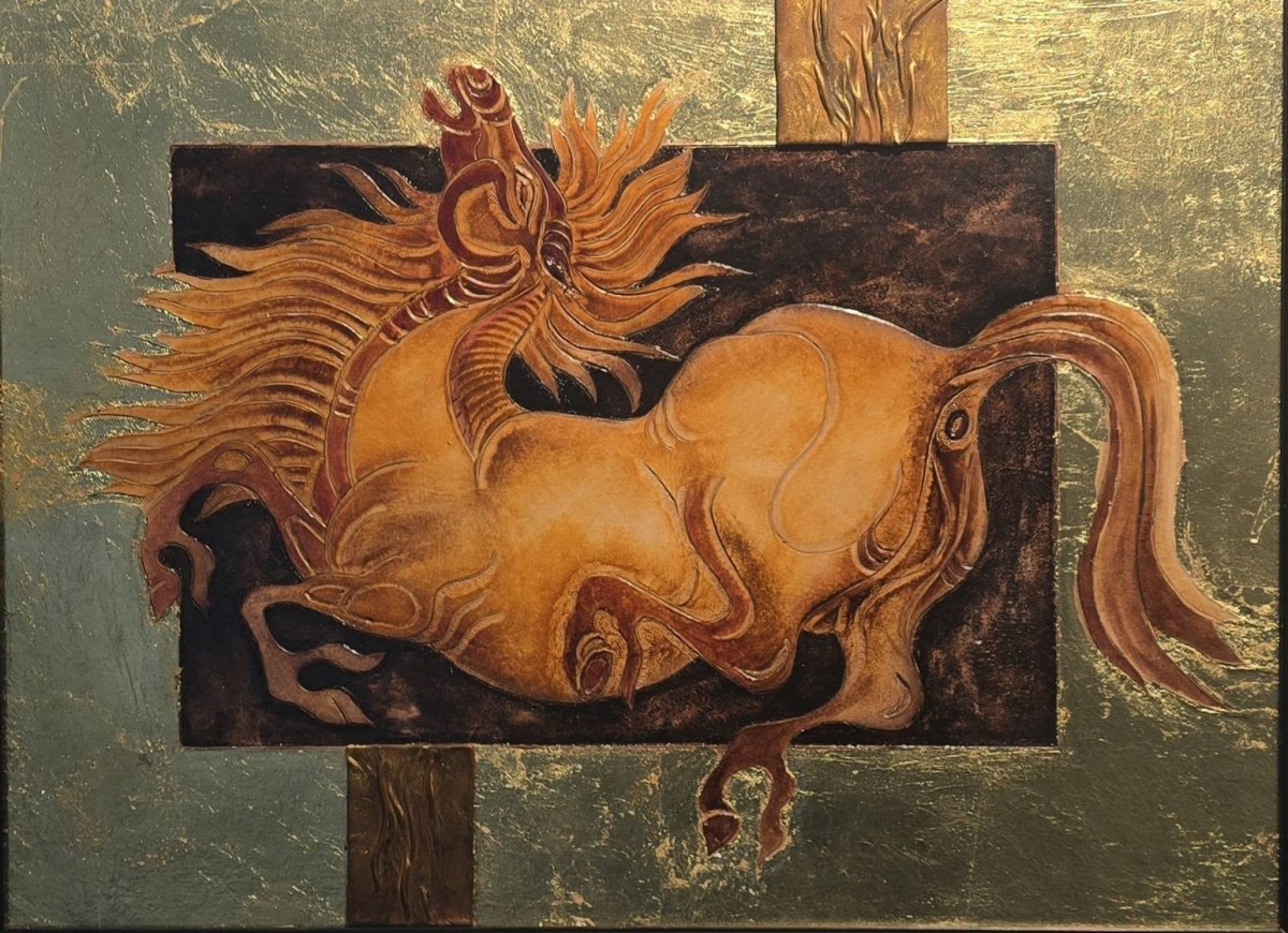 “Хийморь” бүтээл нь арьсан хөөмлийн аргаар хийсэн. Аз хийморьтой байхыг бэлгэдэж морио шүтдэг гэсэн санааг өргөн уудам талдаа эрх дураараа тонгочин янцгаан давхиж буй азаргаар төлөөлүүлэн бүтээлээ хийсэн гэдгийг Х.Алтанхуяг хэлж байлаа.